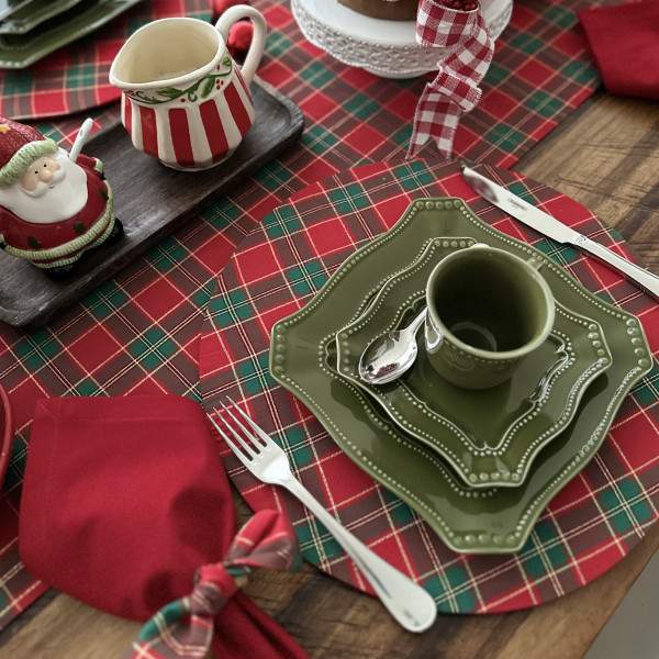 - Capa de Sousplat removível estampa floral em tecido 100% algodão com fio lurex dourado